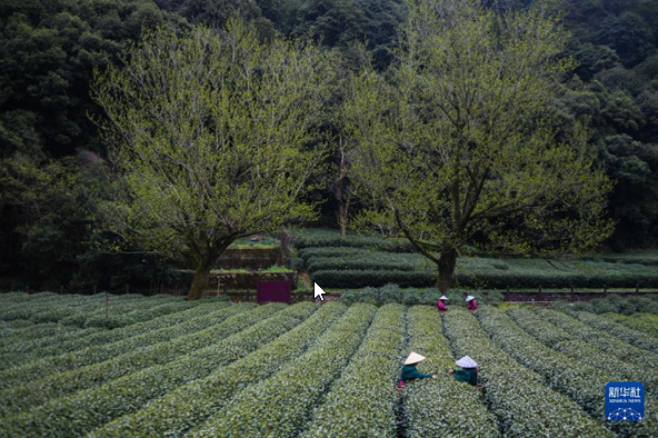 梅家塢村茶農(nóng)采摘西湖龍井“明前茶”。新華社記者 徐昱 攝